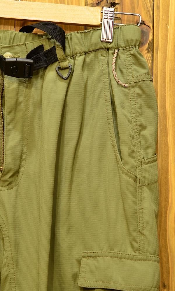 ■Details:様々なアウトドアシーンで活躍する汎用性の高いトレッキングカーゴパンツ/撥水性を備えた生地/膝部立体裁断/フロントポケット×2、バックポケット×2、サイドポケット×2、キーループ、ウエストベルト有/素材:表地ナイロン100%、裏地ポリエステル:65% コットン:35%