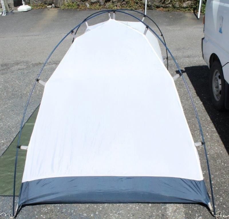 ■Condition:C(本体四隅のシームテープ剥がれ箇所有、その他シームテープ点々と浮き箇所がありますが、概ね接着しています/本体、フライシート、ボトムに点々と生地の汚れ有/全ペグ欠損)
