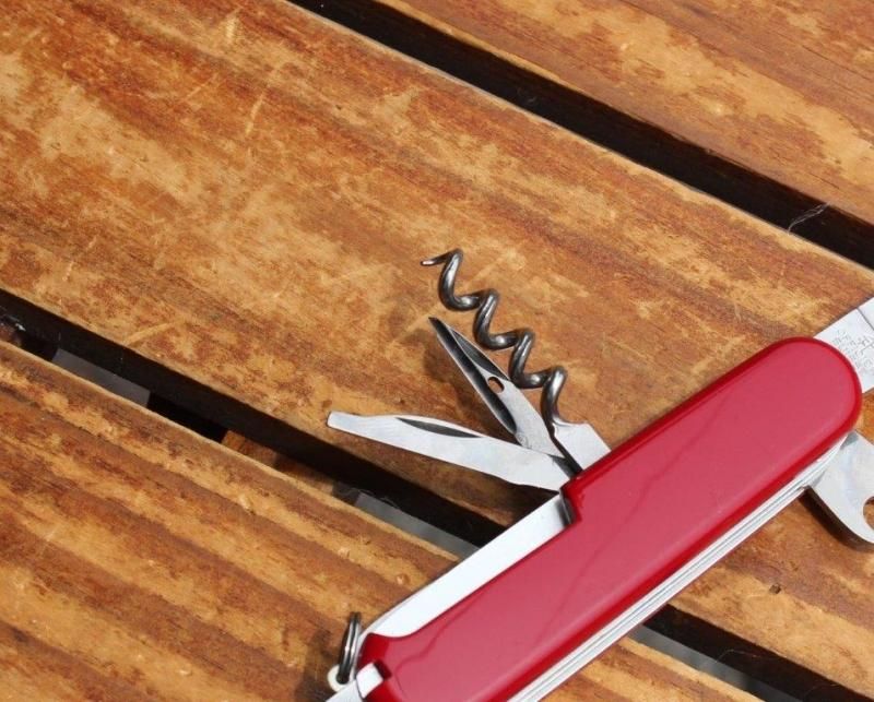 ■Details:多彩な機能を備えたマルチツールです/大ナイフ、小ナイフ、ヤスリ、のこぎり、針外し、うろこ取り、スケール、はさみ、栓抜き、大マイナスドライバー、缶切り、小マイナスドライバー、リーマー、コルク抜き、トゥースピック、ピンセット、キーリング