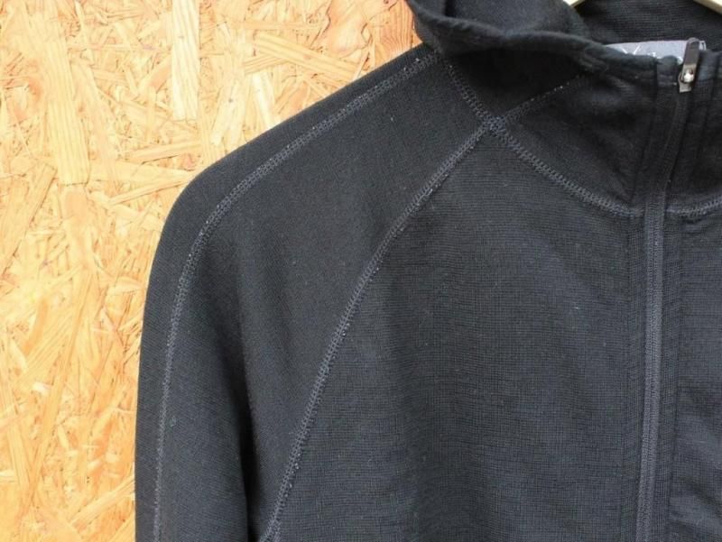 ■Details:参考定価:22,000円/21ミクロン・ニュージーランドメリノウール100%を使用した中厚手程度のパーカ/メリノウールの特性の調湿機能に、耐久性を備えています/タイトめなシルエットに全歩行へのストレッチ性を備えています/アメリカ製/チェストポケット×1、サムホール/素材:メリノウール100%