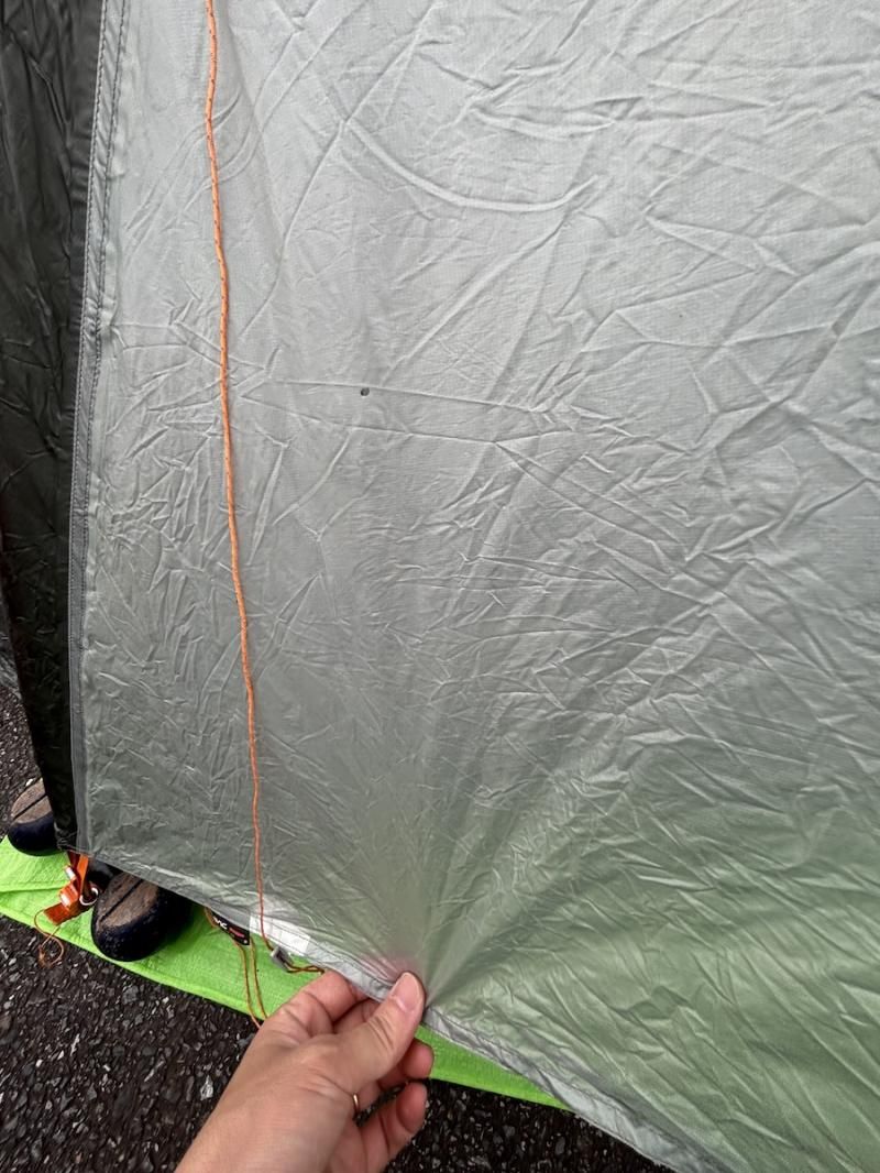 ■Condition: C(・インナーテント:サイドに焦げ穴あり / 底部に汚れあり / LEDライトいくつか点灯せず / 底部に補修あり(パッチ貼りあり)二箇所 / シームテープ浮き箇所あり / 生地にベタつき気味 / ・フライシート:焦げ穴 2箇所あり / 上部付近にシミ汚れ多数あり / オレンジ色の生地の色移り多数あり / シームテープ浮き箇所多くあり、要交換・ペグ×10(全体的に傷、汚れあり / 1本欠損 / 新品時は11本) / ・フレーム:数カ所細かな傷あり / ・各スタッフバックベタつき気味 / ・全体的に使用による汚れあり)