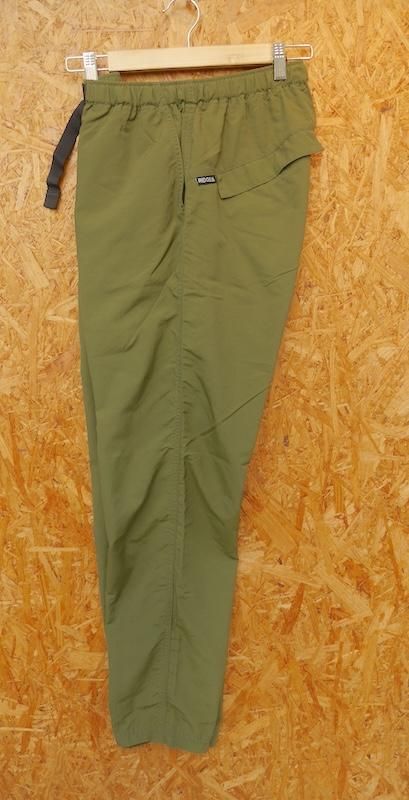 ■Details:参考定価:19,000円 / トラウザーズの様なシルエットが特徴の、デイリーユースでもハイキングでも履けるパンツ / ベーシックで飽きのこないデザインで、ヒップ部分は、ゆったりと裾にかけ自然と細くなっているテーパードデザインシルエット /ノンストレッチのワッシャー加工を施したナイロン生地を採用 / ノンストレッチですが運動量はヒップから膝、裾にかけて十分なゆとりを確保し、股下にはマチを入れて足上げも容易です / フロントポケット×2、サイドジップポケット×1、バックポケット×2、ウエストベルト付 / 素材: ナイロン100% / 日本製