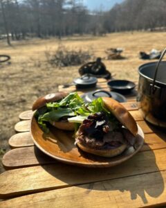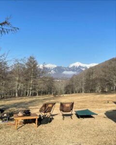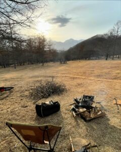 日がな一日、八ヶ岳を眺めながら焚火して、あとは美味しいお酒とお肉たっぷりのごはん、、