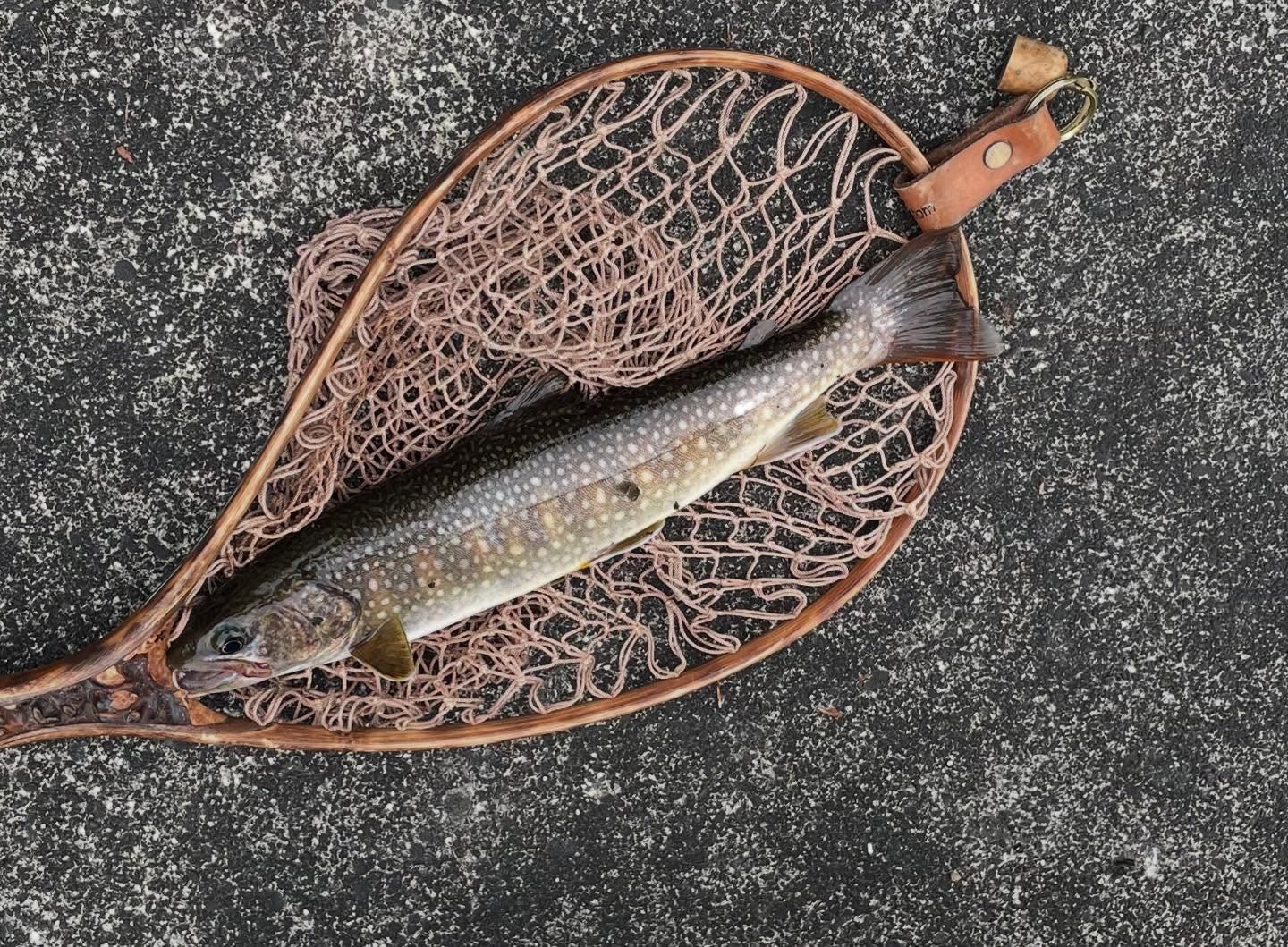 最後に寄り道した里の近くの秘密の?池で堰堤の上から釣り上げた尺岩魚でした。